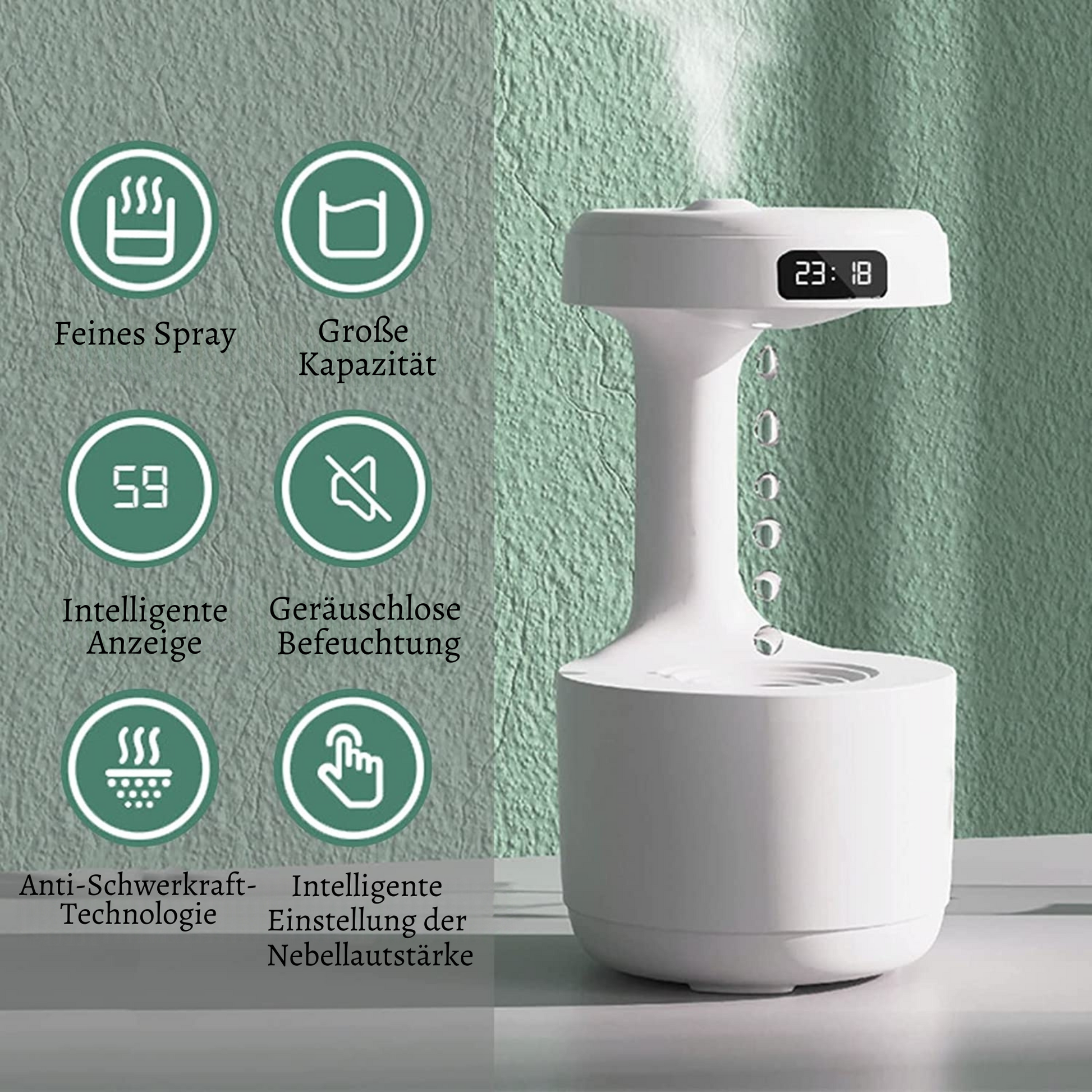 ✔ Einzigartiger Anti-Schwerkraft-Tropfen-Effekt - Gradefy™️ nutzt die Prinzipien der Optik, um Wassertropfen langsam nach oben fließen zu lassen und Ihren Raum zu verzaubern.